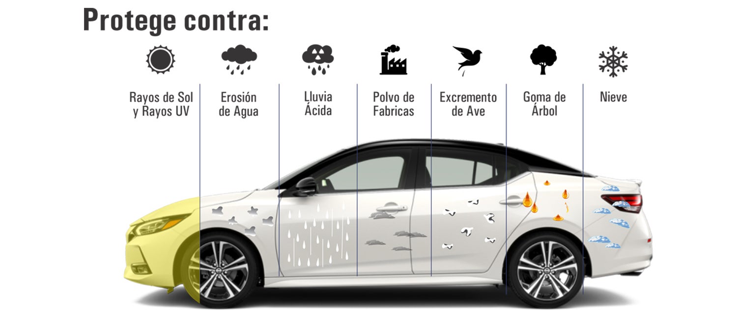 Durante el proceso de lavado del vehículo, se aplica en mojado un químico con nanotecnología exteriores (NW70 y NK10) y en interiores (RI90), el cual se activa con el agua penetrando molecularmente, sellando y creando una capa protectora en los espacios entre las moléculas de las superficies, logrando una gran repelencia de líquidos acuosos y aceitosos. La suciedad, los insectos muertos y otras impurezas, simplemente se reducen casi a cero. Conserva el brillo, es resistente al medio ambiente y genera estabilidad contra ataques ácidos o alcalinos como excremento de aves, previene la corrosión, disminuye el asentamiento de agua y lodo.
