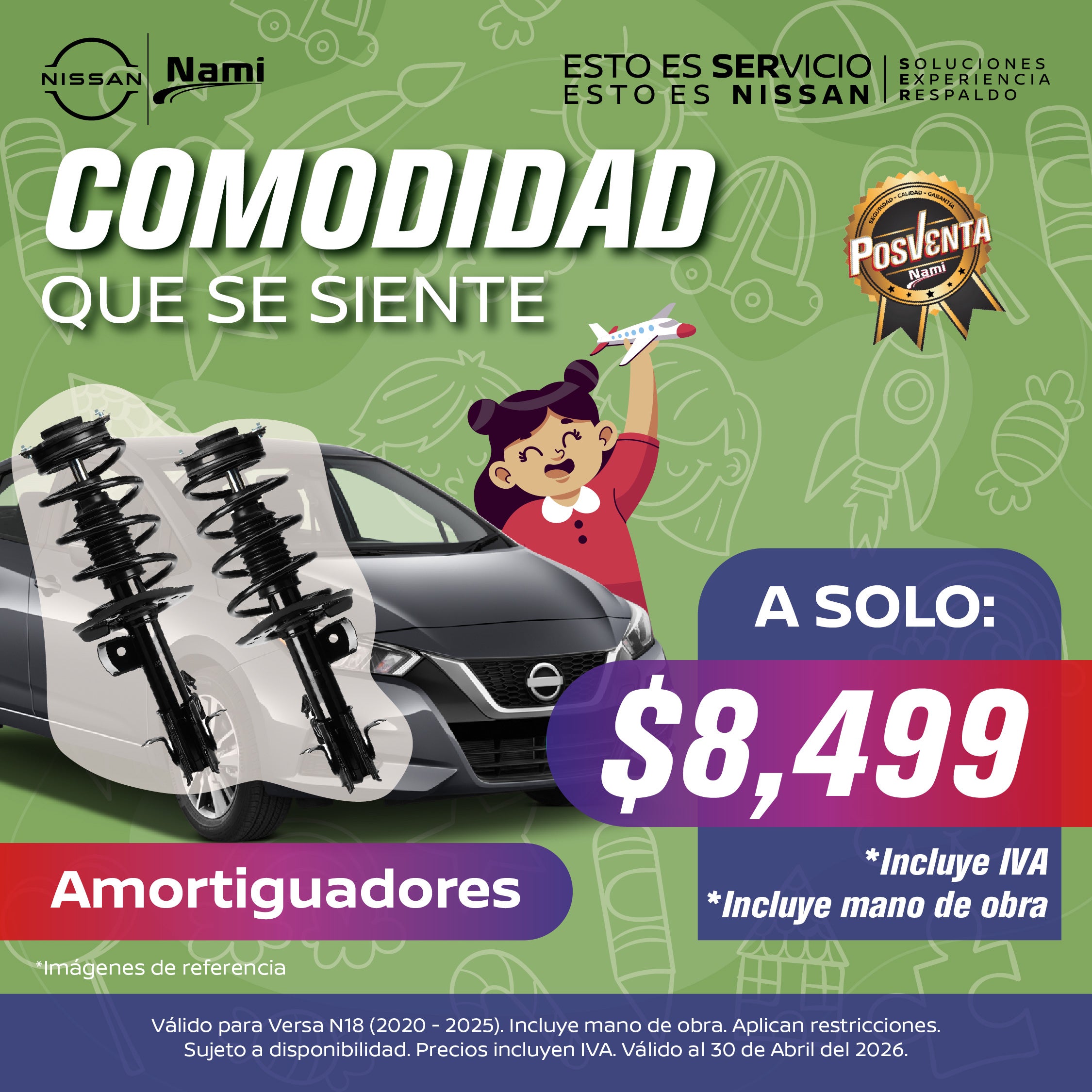 Incluye mano de obra, Válido para Versa N18 (2020-2025)