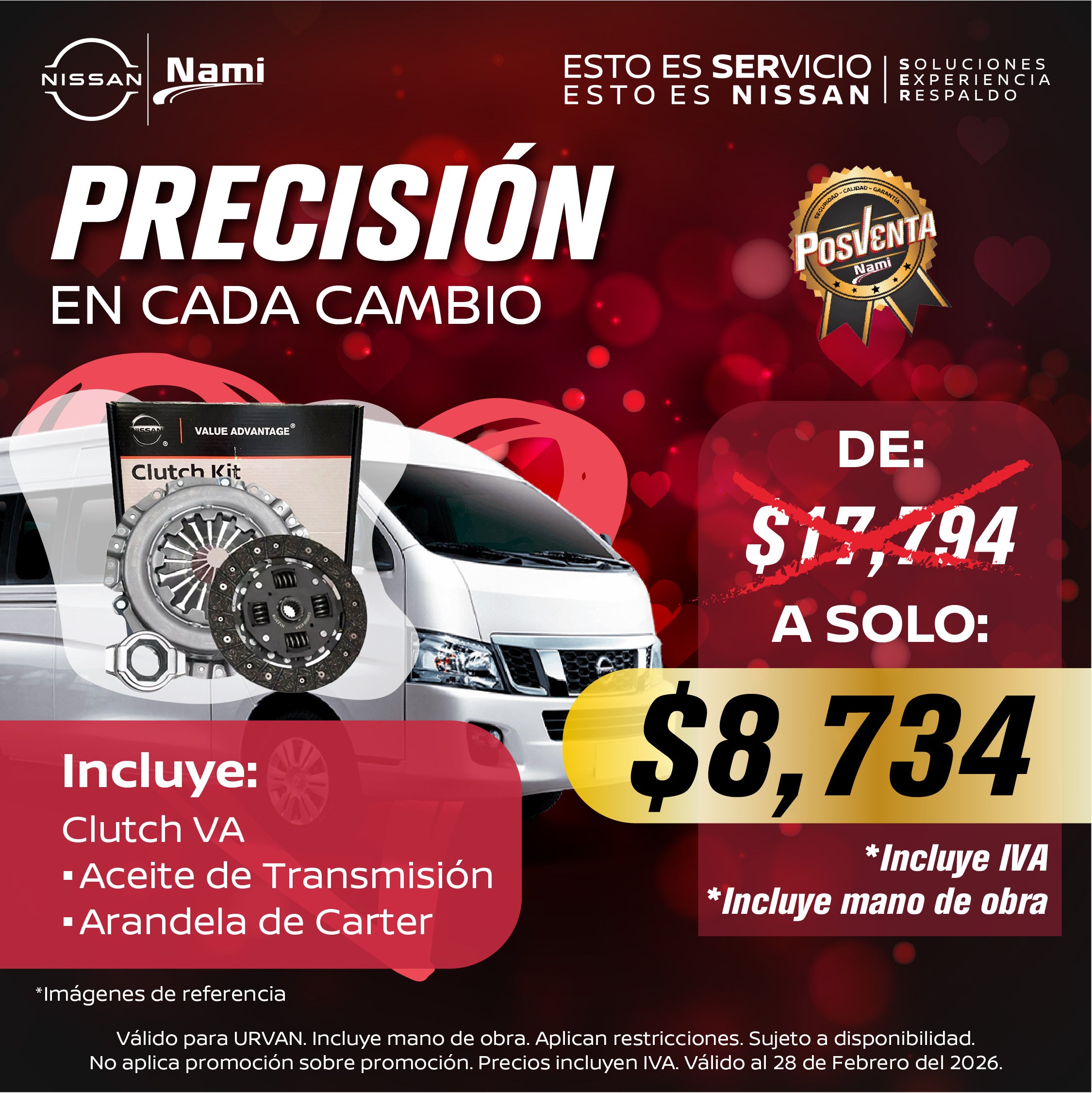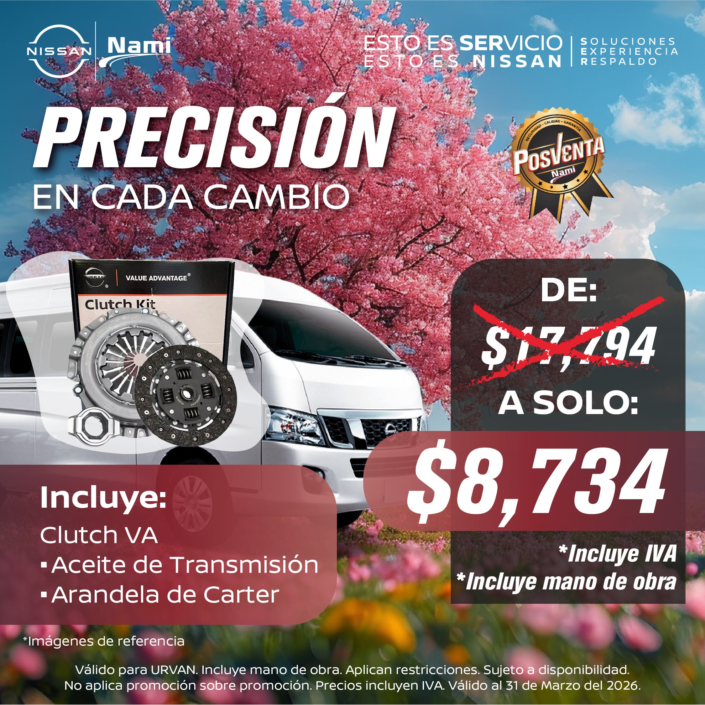 CLUTCH VA + ACEITE DE TRANSMISIÓN + ARANDELA CARTER. VÁLIDO PARA URVAN. INCLUYE MANO DE OBRA.